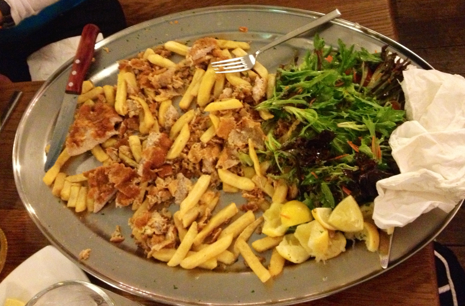It became chewy and incredibly salty which evaporated my saliva like a sponge, even an extra serving of lemon to squeeze over did not assist, so I had to turn to the beer.
