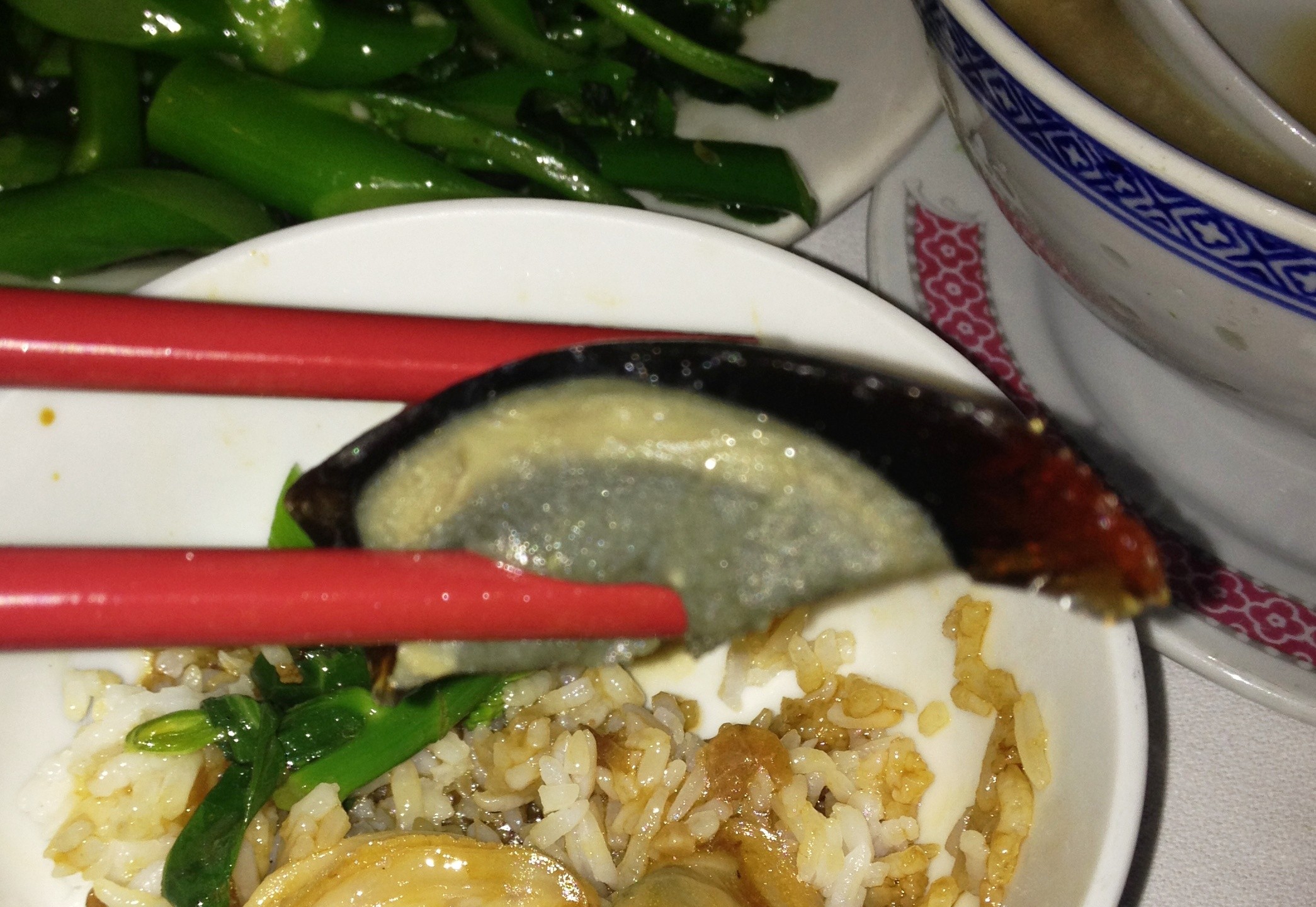 Now If I were a big fan of egg I may have been able to deal with the texture of the yolk, but frankly I instantly likened it to having really strong egg flavoured peanut butter stuck to the roof of your mouth, and it wouldn’t budge. The preserving process makes the yolk so creamy and thick that it’s almost like eating a spoon of glue… rotten egg glue.