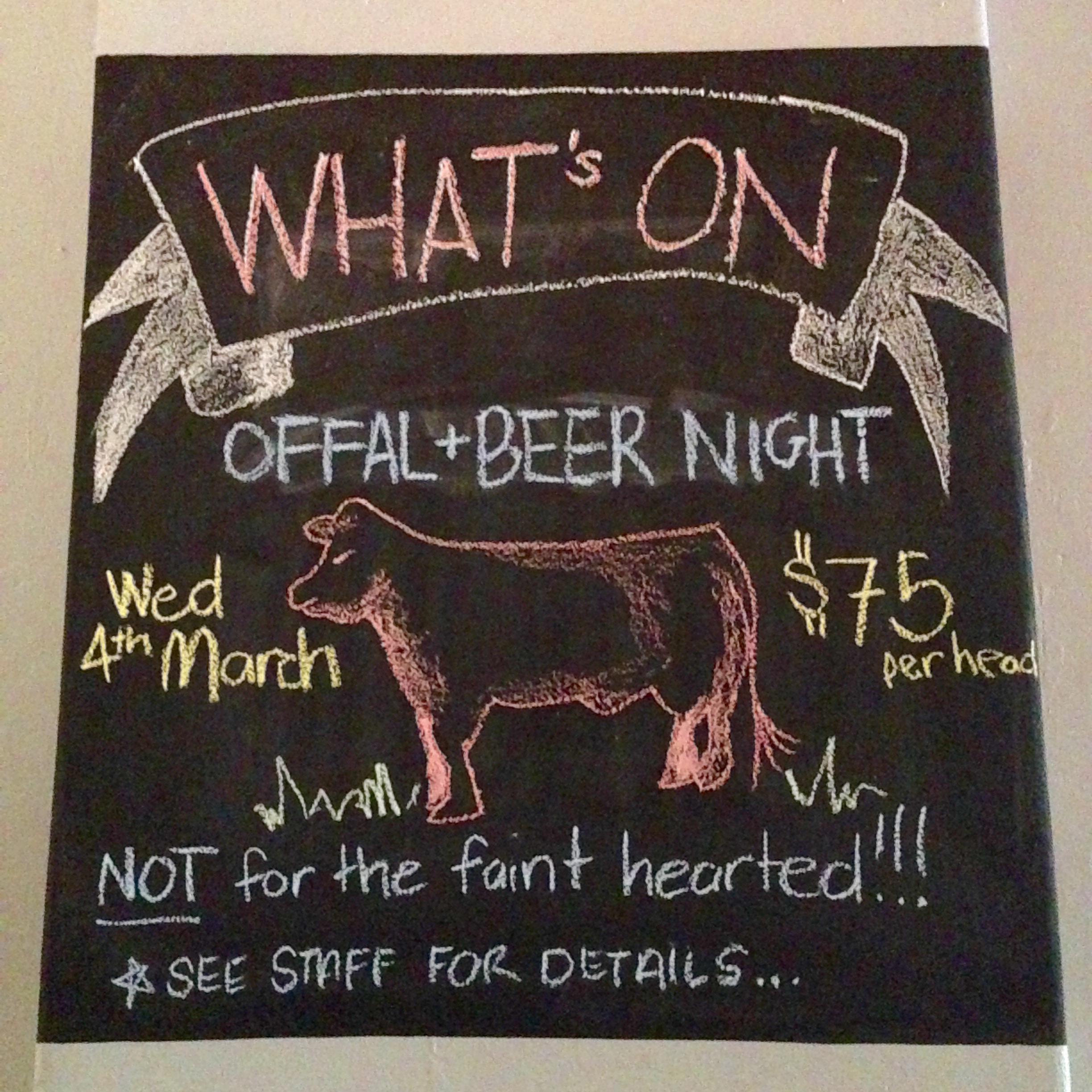 You can imagine my excitement when I came across an event at Northern Git titled “Git into Offal and Beer”. Advertised as a feast of 11 courses of offal (organ meat) with matched beers and a single malt whisky for the tidy sum of $75 per head, my interest was piqued.