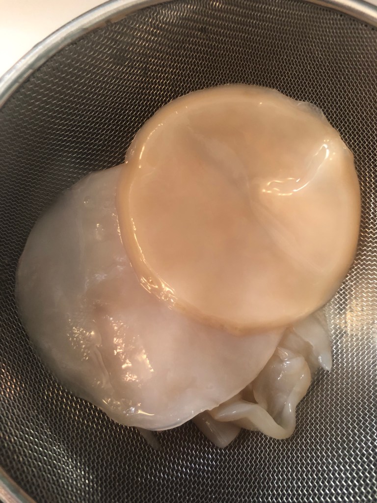 They resemble a weirdly flat jellyfish, that forms in layers over time as it eats the sugar used to make kombucha. Sometimes they float, sometimes they sink, sometimes they grow legs all the way to the bottom of the jar. They are VERY hard to kill and even more easy to grow.