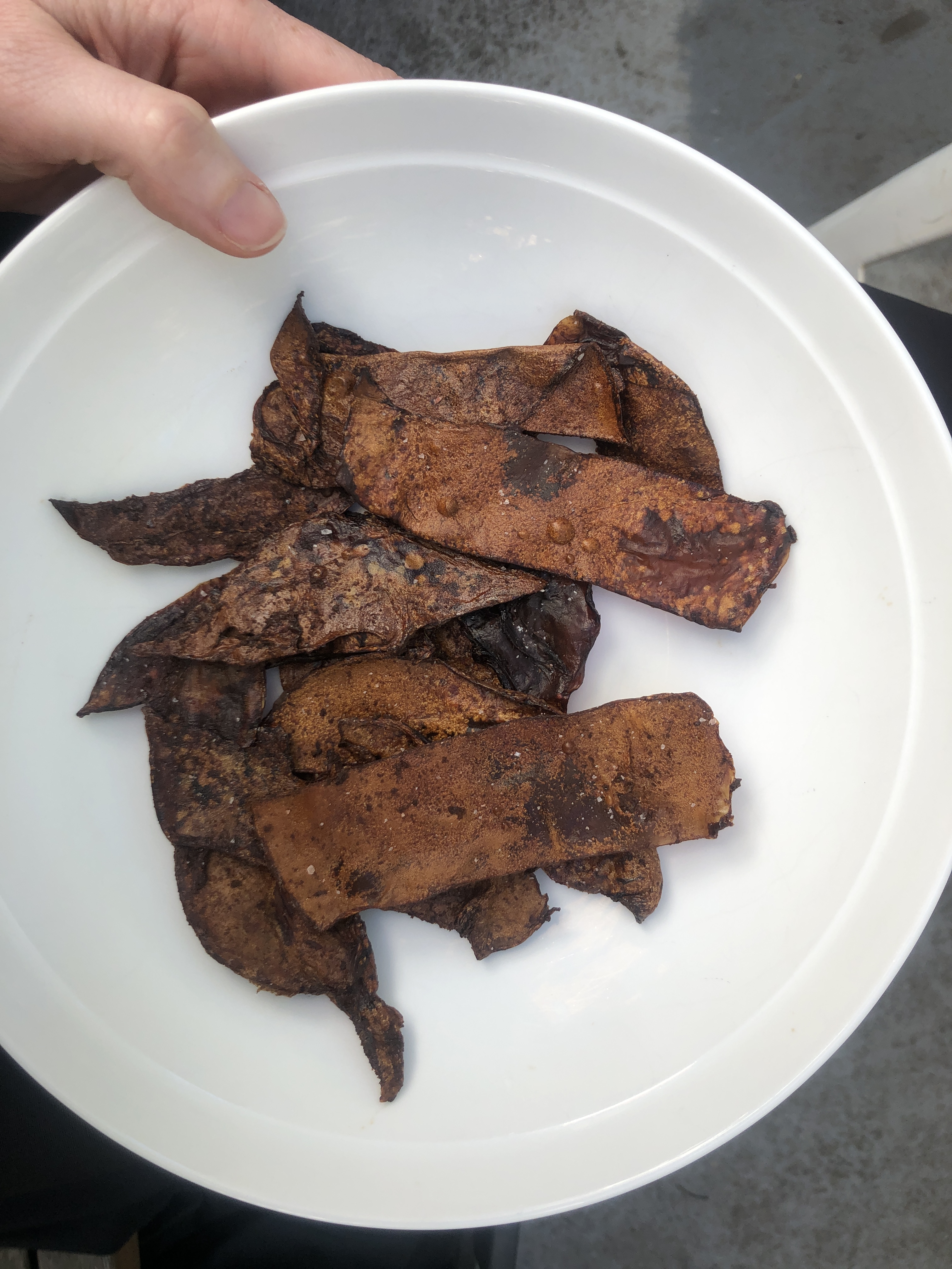 You really want to give them time to really turn into a good husk, like a pork crackling or… a vegan option for pork crackling which is probably Kombucha jerky.