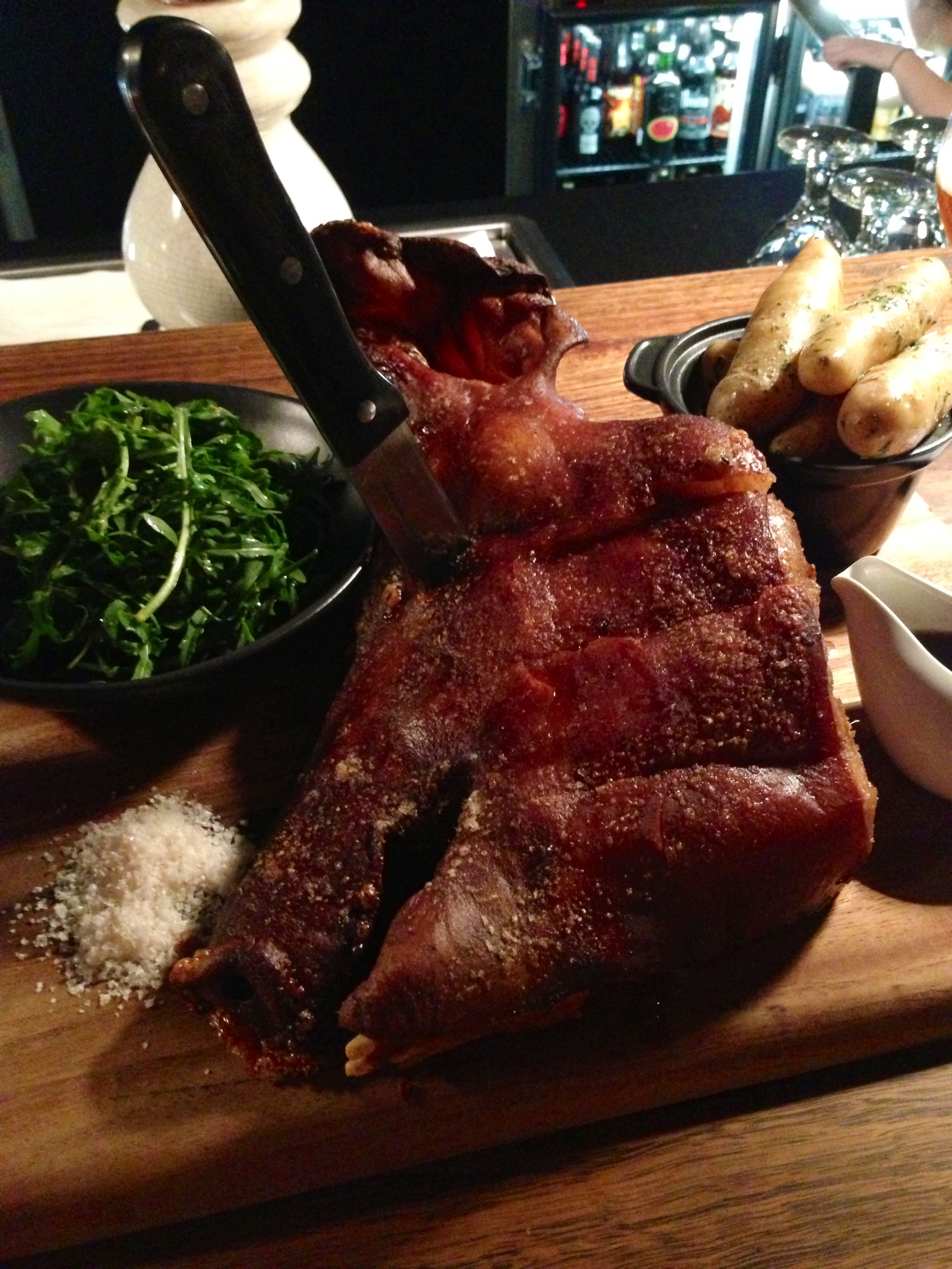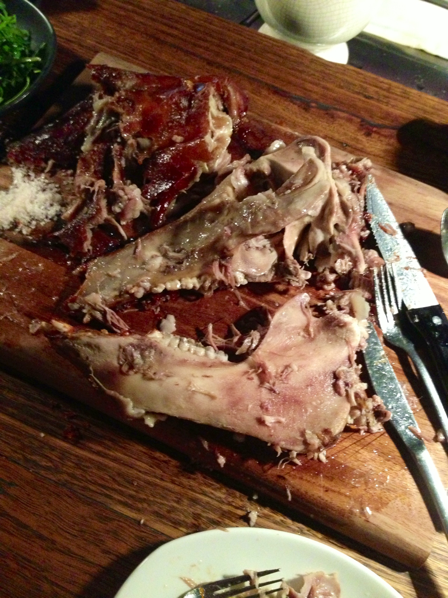 You ask and you shall receive! When the pig’s head arrived we almost regretted ordering entrees as… it’s a beast! Seriously a pig’s head is really quite a thing to behold in real life, well… roasted life. The ear, the huge jaw complete with teeth, the snout and the delicious looking cheek that you could just tell would hold such juicy meat, it was very exciting and a little overwhelming deciding where to begin!